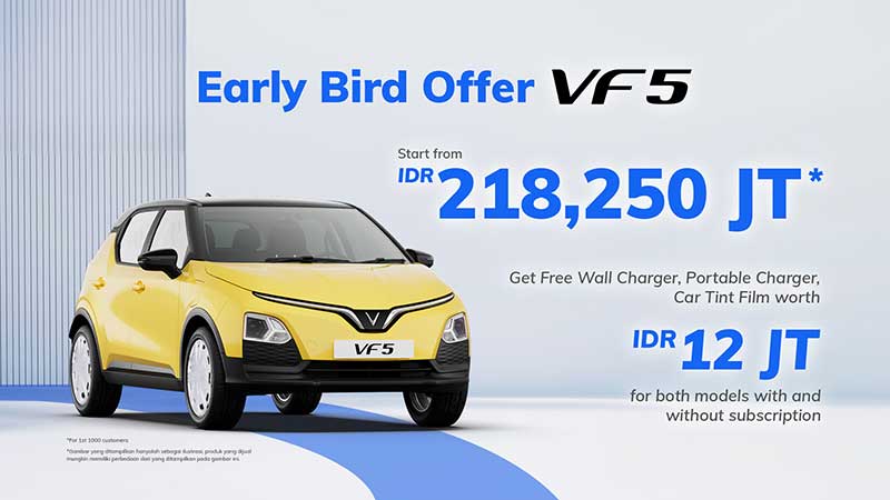 VinFast VF 5 adalah SUV kompak yang dirancang untuk memenuhi kebutuhan pengendara perkotaan dengan efisiensi tinggi dan tampilan stylish. Dengan jarak tempuh hingga 300 km dan teknologi cerdas yang terintegrasi, VF 5 menawarkan kenyamanan dan performa luar biasa. Harga yang terjangkau menjadikannya pilihan ideal bagi siapa saja yang ingin merasakan pengalaman berkendara listrik tanpa kompromi.